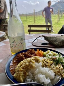 お昼ごはんは、小林さんの奥様特製のスパイスカレー。これがまた絶品で。まかない?ワインもどんどん注がれるものだから、夜に会食があるとわかっていても、おかわりしてしまうわけです。
